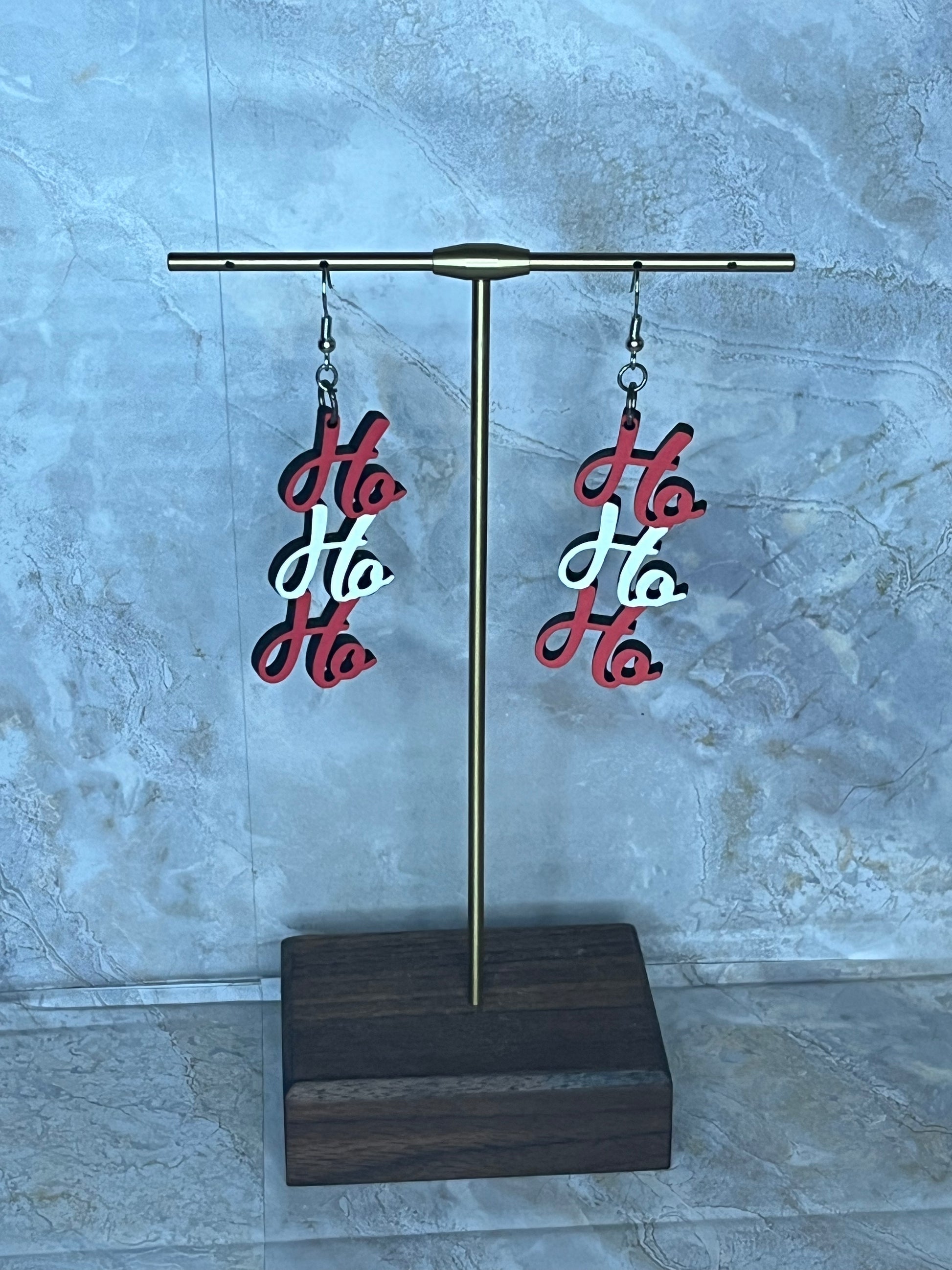 This is a wood earring with colored paint to accent features of design. Hook for earrings is hypoallergenic with plastic backing. Earring is handmade