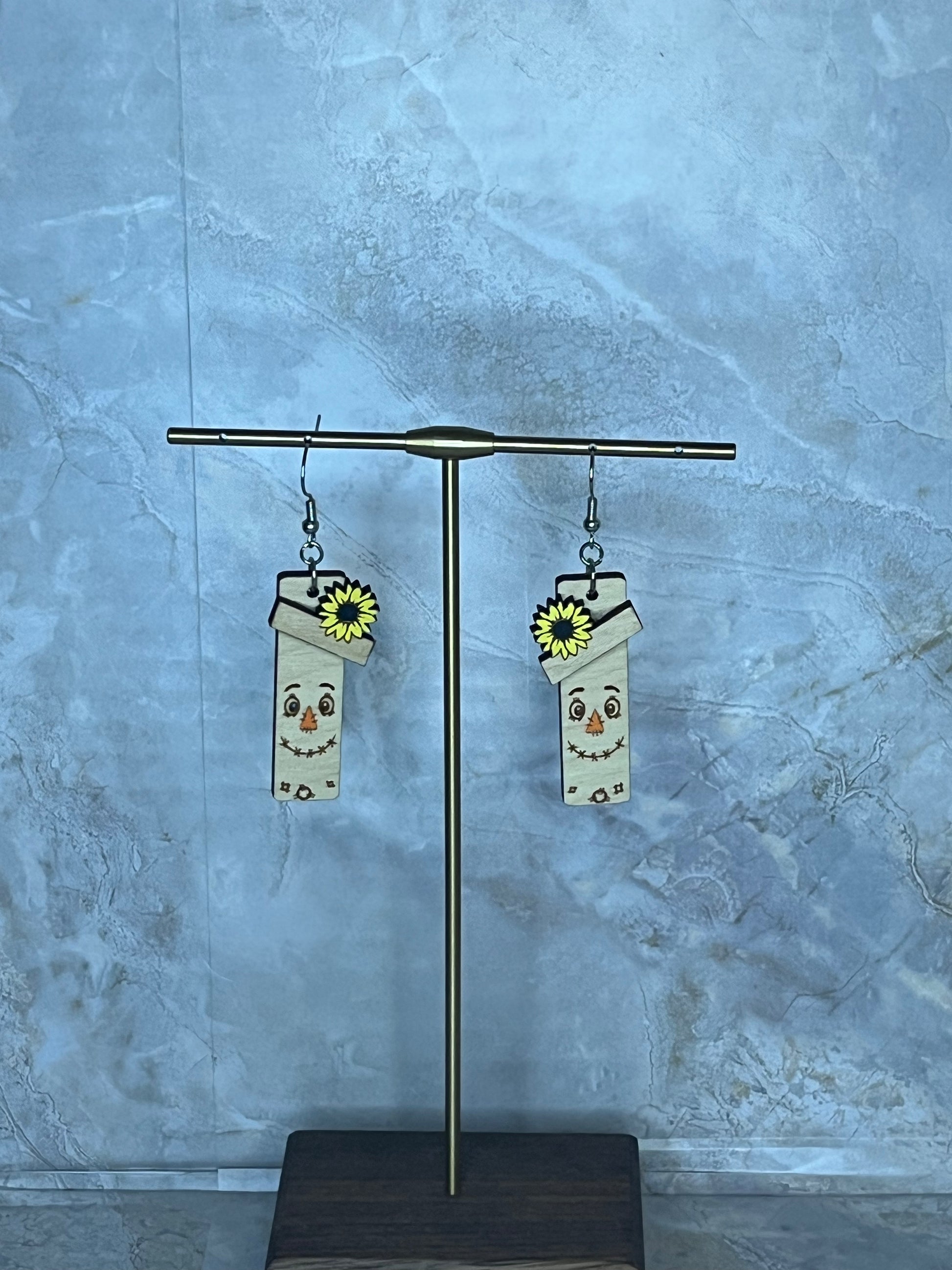 This is a wood earring with colored paint to accent features of design. Hook for earrings is hypoallergenic with plastic backing. Earring is handmade